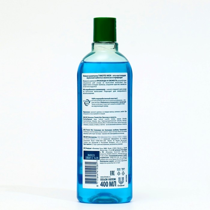 Шампунь для волос Timotei Men «Прохлада и Свежесть», 400 мл