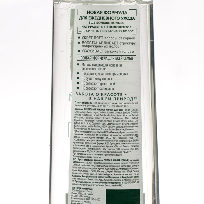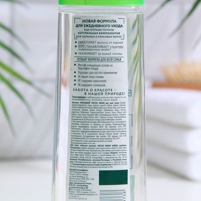 Шампунь для волос Чистая линия для всей семьи Березовый, 250 мл