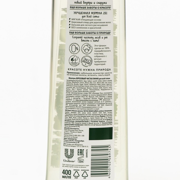 Шампунь для волос Чистая линия «Берёзовый», 400 мл