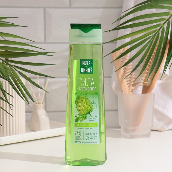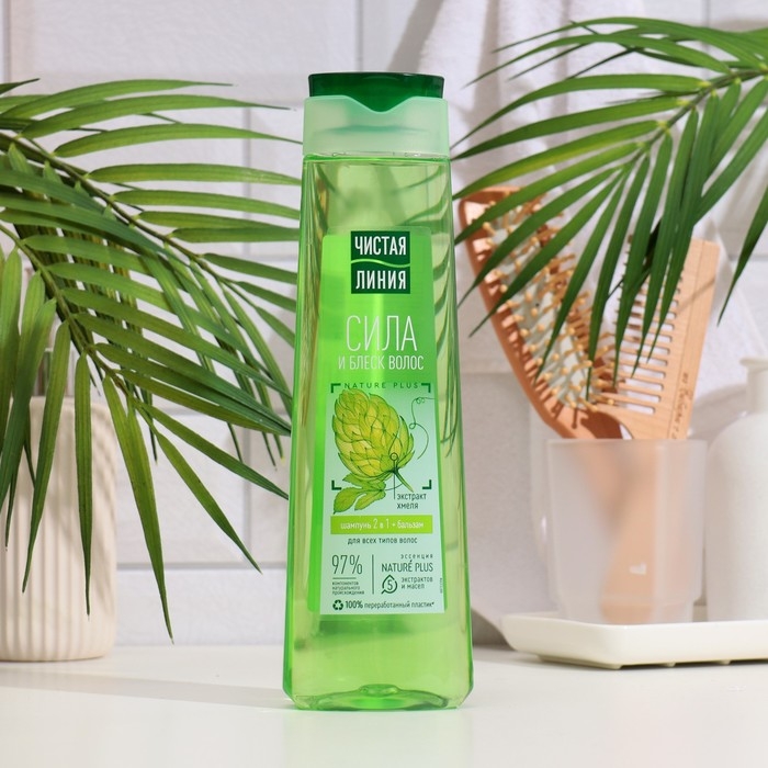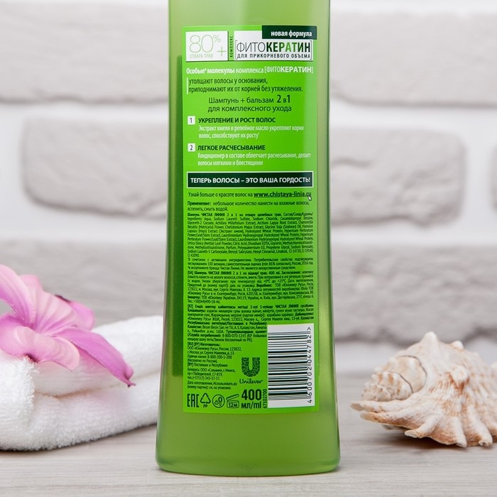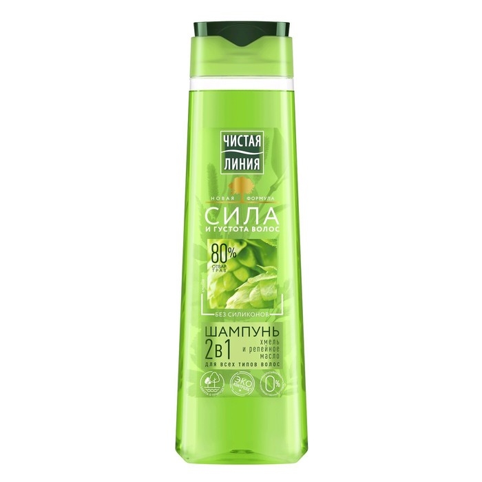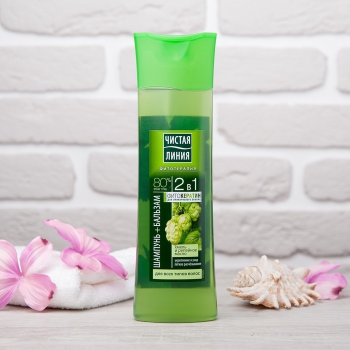 Шампунь и бальзам для волос Чистая линия 2 в 1 «Фитокератин», с хмелем и репейным маслом, 400 мл