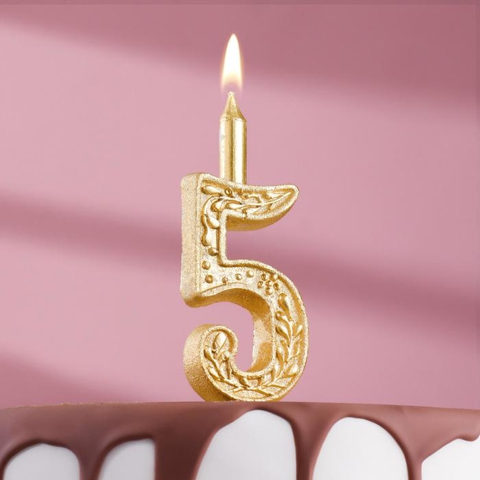 Свеча для торта цифра "Золотой узор", 10,2 см, цифра "5"