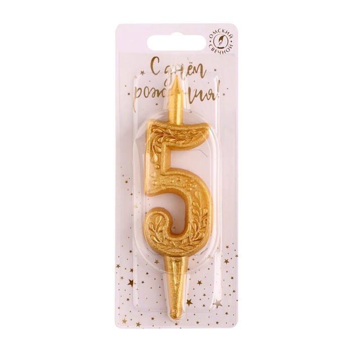 Свеча для торта цифра "Золотая", 5,5 см, цифра "5"