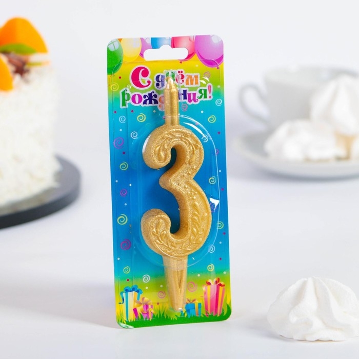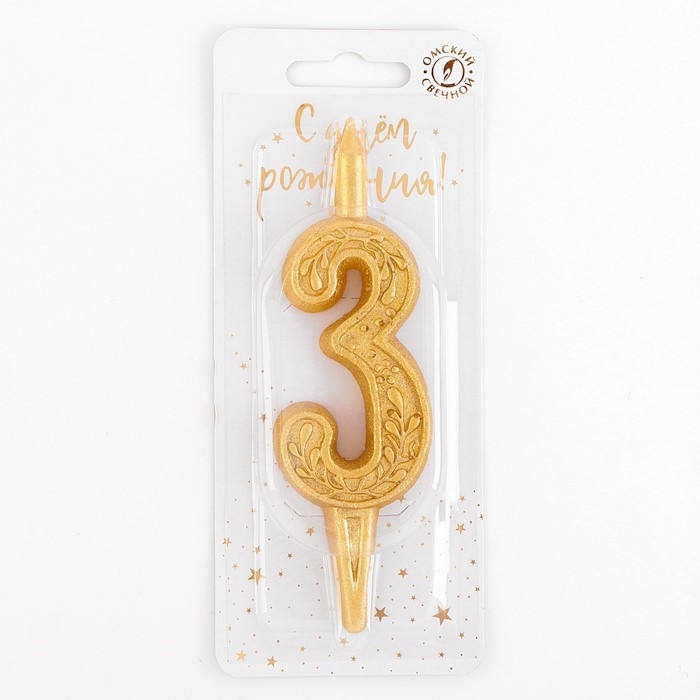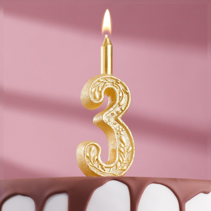 Свеча для торта цифра "Золотой узор", 10,2 см, цифра "3"