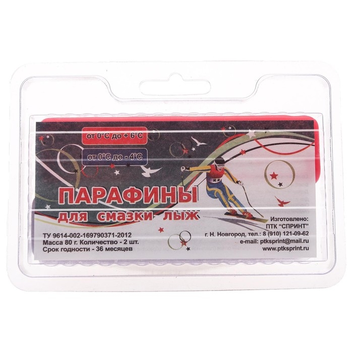 Парафин для лыж, 2 шт., К-Ф, от +6 до -4°C, 80 г