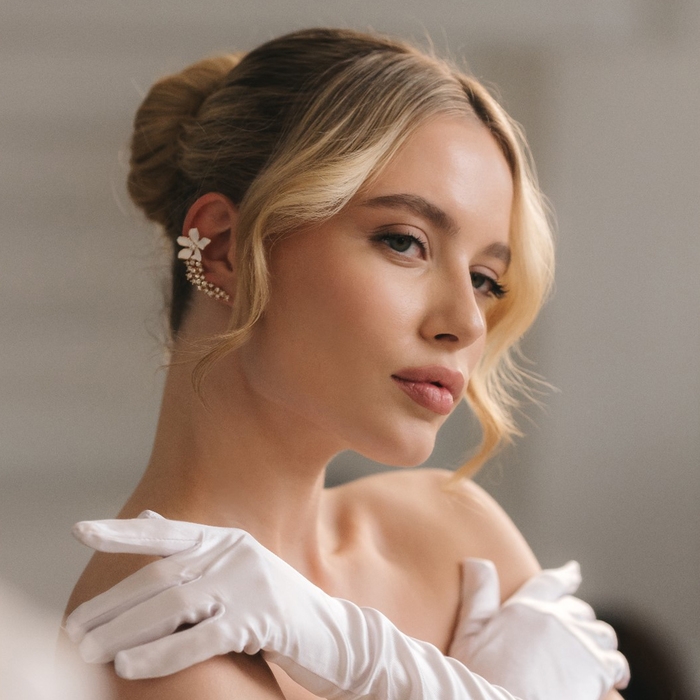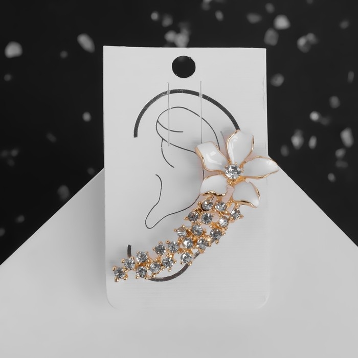 Серьга «Кафф» цветок изящный, цвет белый в золоте