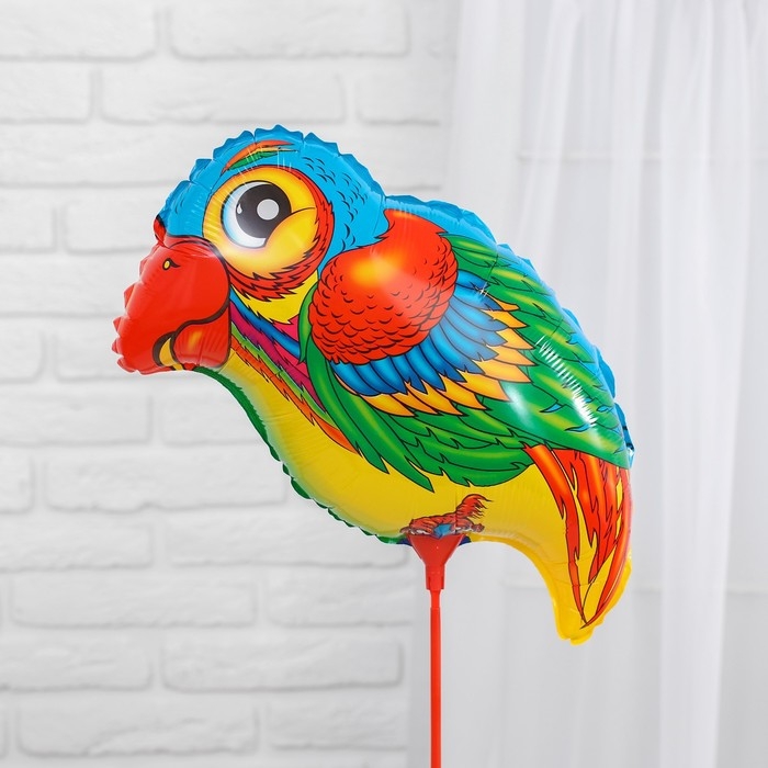 Шар фольгированный 10" «Попугай — большие глазки» с палочкой