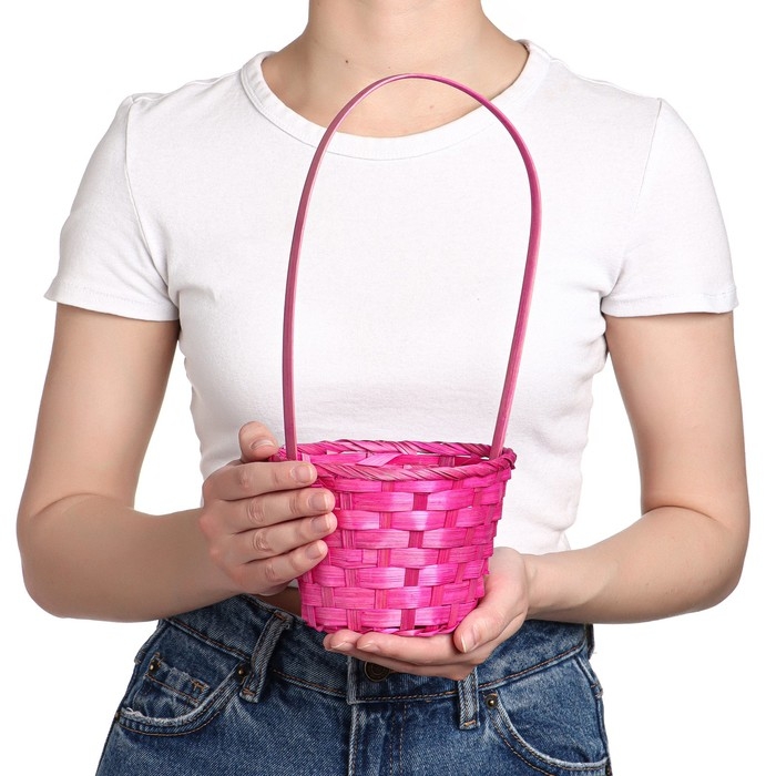 Корзина плетёная, бамбук, розовая