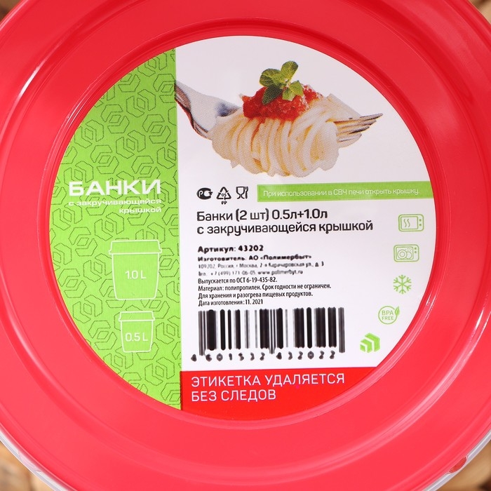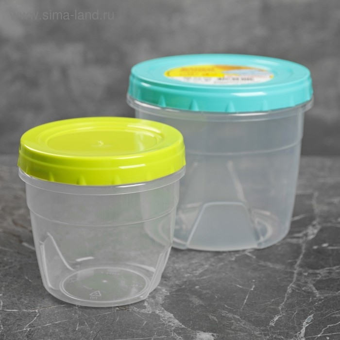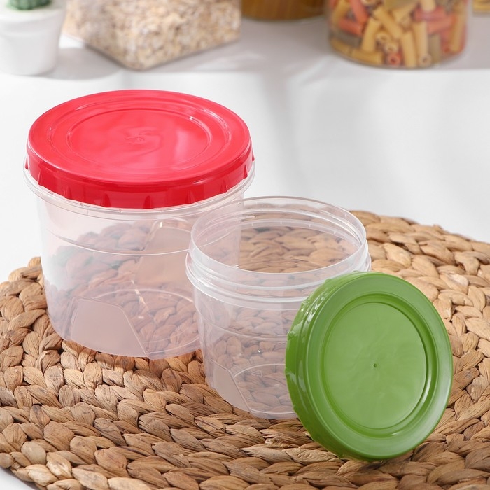 Набор контейнеров круглых с закручивающимися крышками, 2 шт: 500 мл, 1 л, прозрачные, крышки МИКС