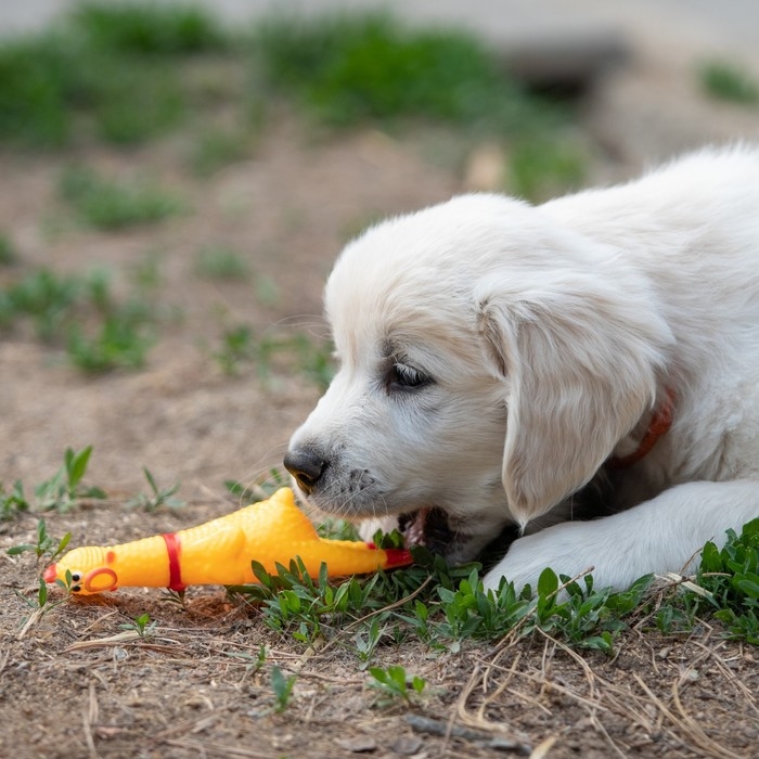 Игрушка изготовлена из безопасного материала и не предназначена для разгрызания. Во время игр виниловые игрушки можно жевать, благодаря этому они массируют дёсны и отчищают зубы собаки от налёта. Таким образом во время игр совмещается приятное с полезным.