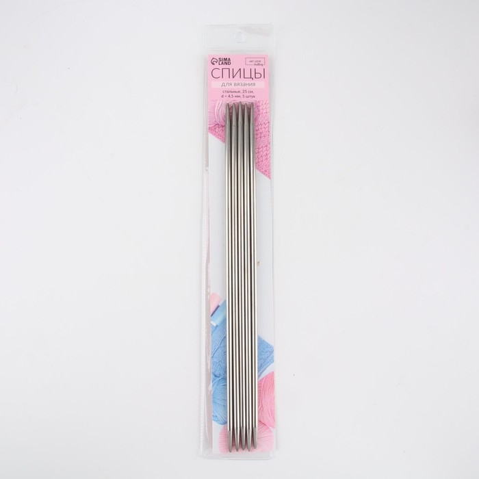 Спицы для вязания, чулочные, d = 4,5 мм, 25 см, 5 шт