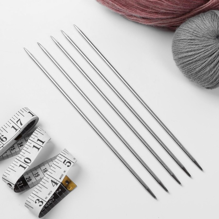 Спицы для вязания, чулочные, d = 5 мм, 25 см, 5 шт