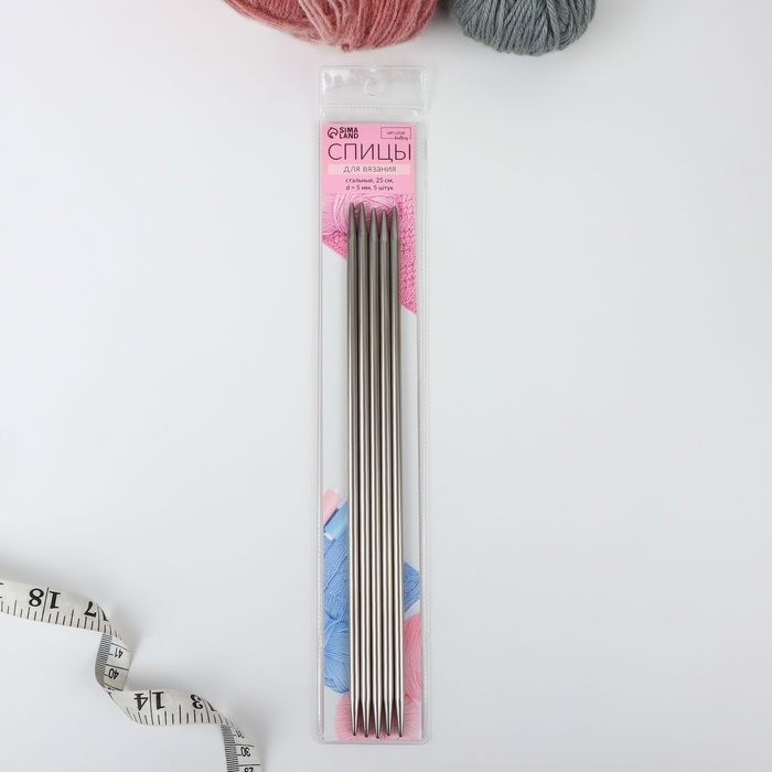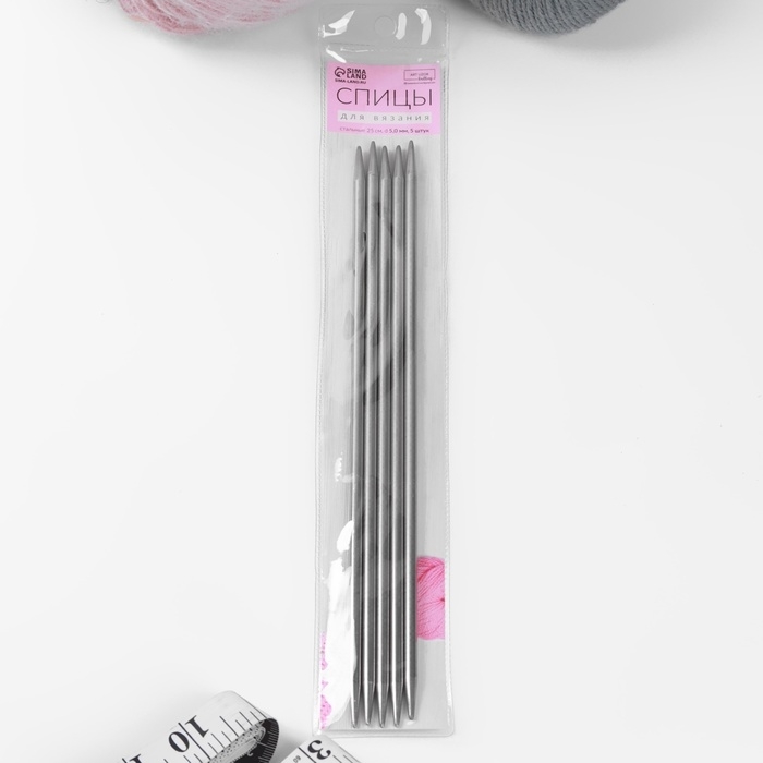 Спицы для вязания, чулочные, d = 5 мм, 25 см, 5 шт