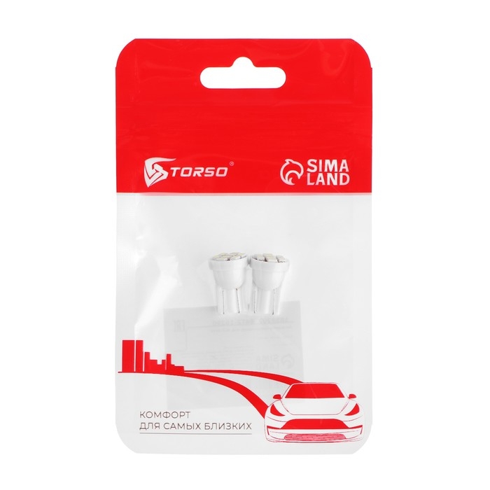 Автолампа светодиодная TORSO T10 W5W, габарит, 12 В, 8 SMD-3528, 2 шт, свет белый