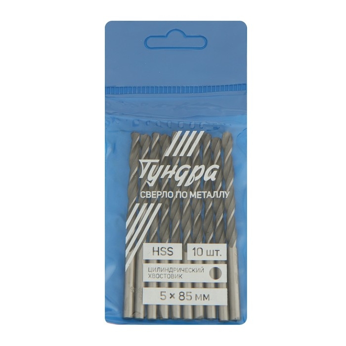 Сверло по металлу ТУНДРА, HSS, цилиндрический хвостовик, 5 х 85 мм, 10 шт.