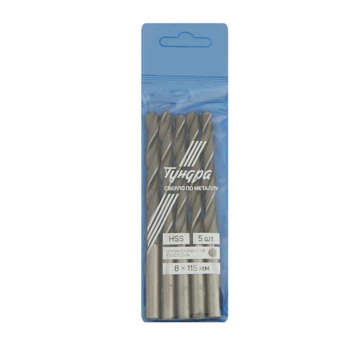 Сверло по металлу ТУНДРА, HSS, цилиндрический хвостовик, 8 х 115 мм, 5 шт.