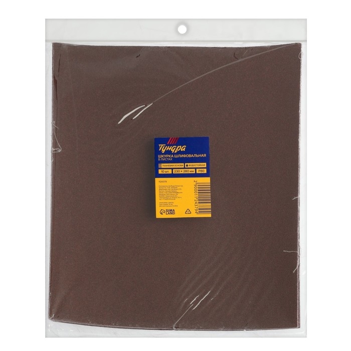 Шкурка шлифовальная в листах ТУНДРА, на тканевой основе водостойкая, 230 х 280, Р80, 10 шт.
