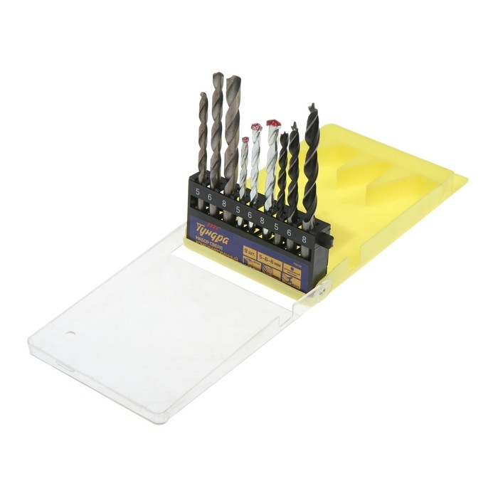 Набор сверл комбинированный ТУНДРА, цилиндрический хвостовик, 5-6-8 мм, 9 шт.