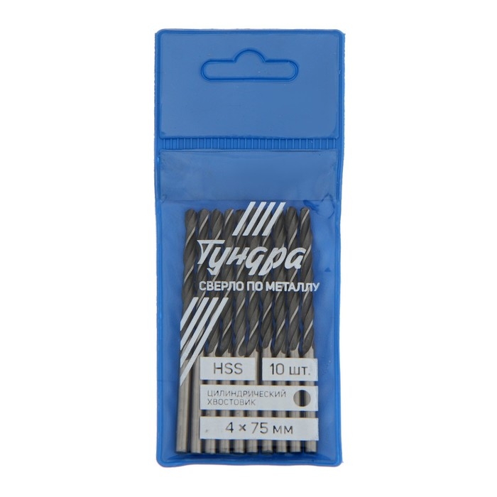 Сверло по металлу ТУНДРА, HSS, цилиндрический хвостовик, 4×75 мм, 10 шт.