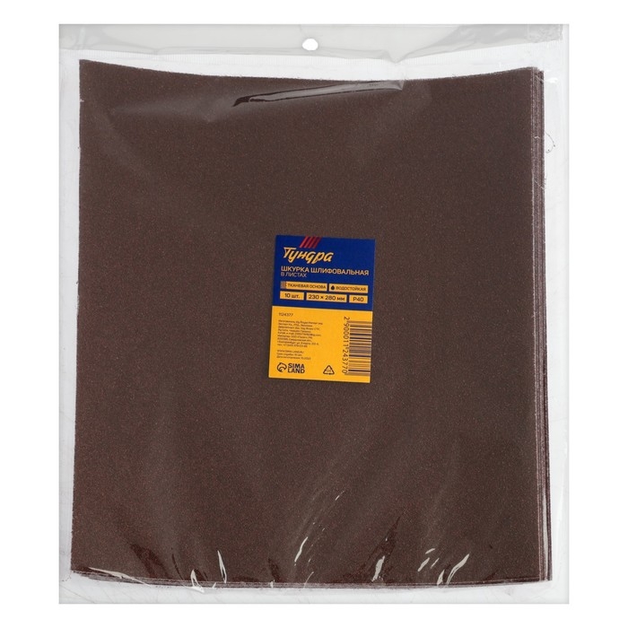 Шкурка шлифовальная в листах ТУНДРА, на тканевой основе водостойкая, 230 х 280, Р40, 10 шт.