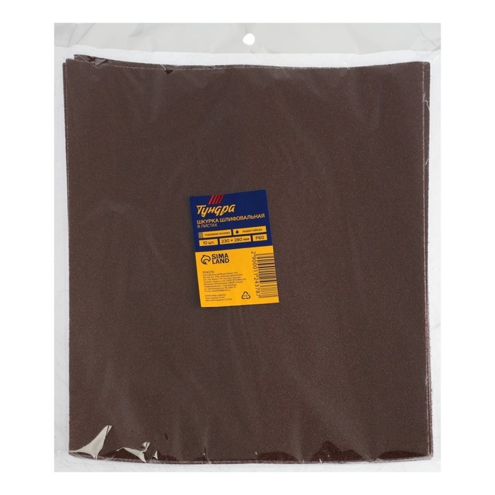 Шкурка шлифовальная в листах ТУНДРА, на тканевой основе водостойкая, 230 х 280, Р60, 10 шт.