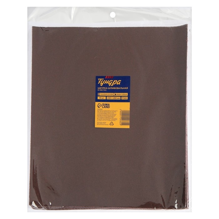 Шкурка шлифовальная в листах ТУНДРА, на тканевой основе водостойкая, 230 х 280, Р320, 10 шт.
