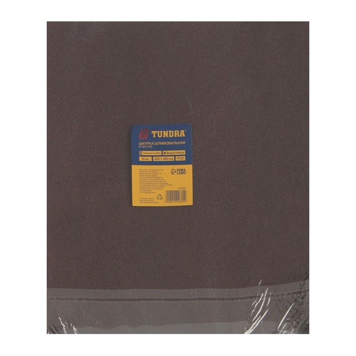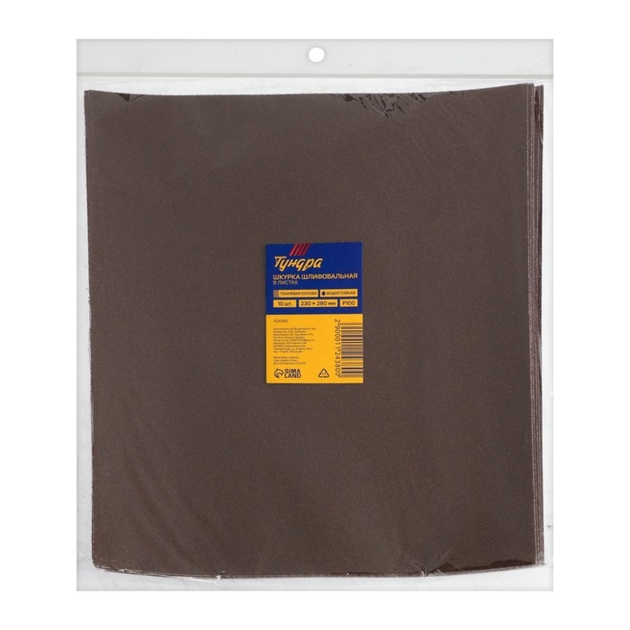 Шкурка шлифовальная в листах ТУНДРА, на тканевой основе водостойкая, 230 х 280, Р100, 10 шт.
