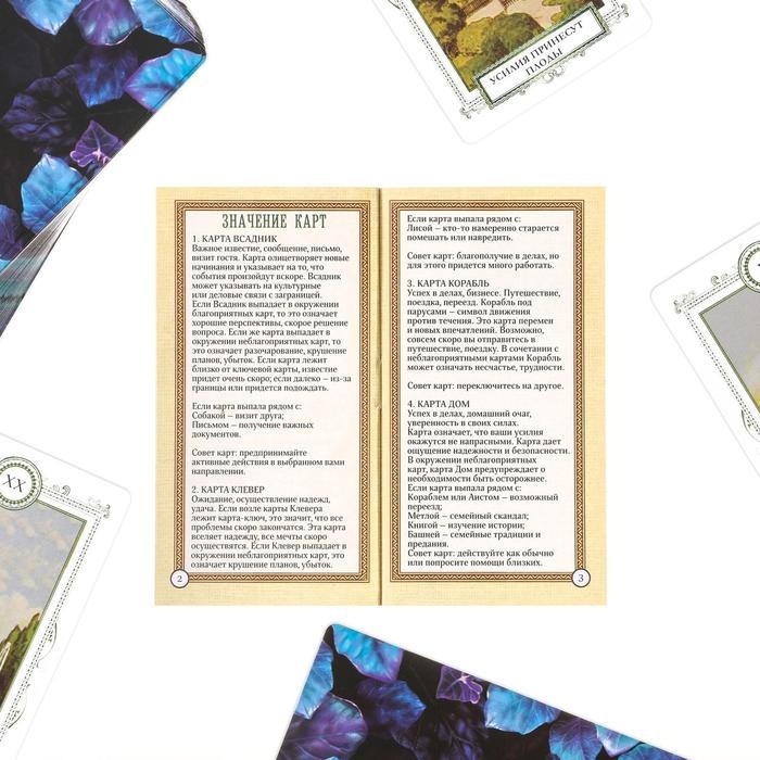 В наборе вы также найдёте брошюру с толкованием каждой карты и несколько вариантов раскладов. А подарочная коробка сохранит вашу колоду от внешнего воздействия, а также послужит отличным подарком для любителей гадания и мистика. Если вы являетесь настоящим ценителем культуры прошлых поколений и любите вещи, окутанные ореолом тайны, то вам придётся по вкусу Оракул Ленорман.