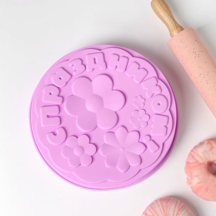 Форма для выпечки Доляна «С Праздником», силикон, 21,5×5 см, цвет сиреневый
