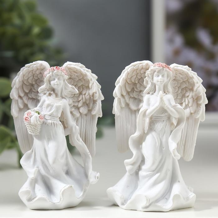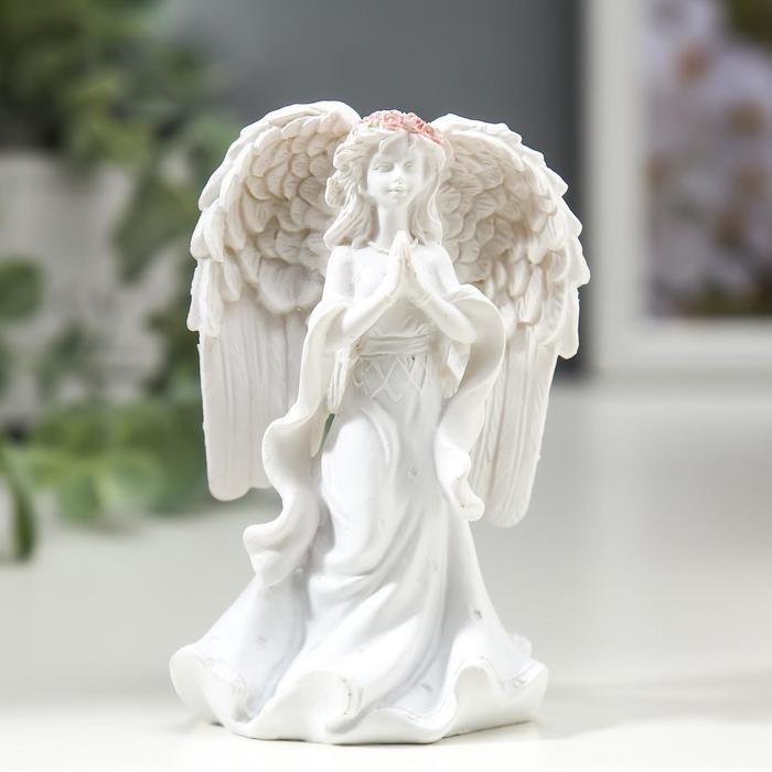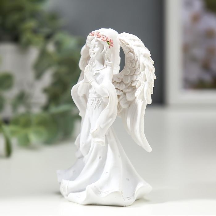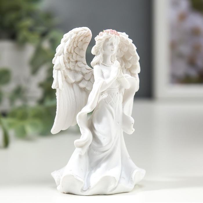 Сувенир полистоун "Ангел-девушка в розовом венке - надежда" МИКС 5х7,5х4 см
