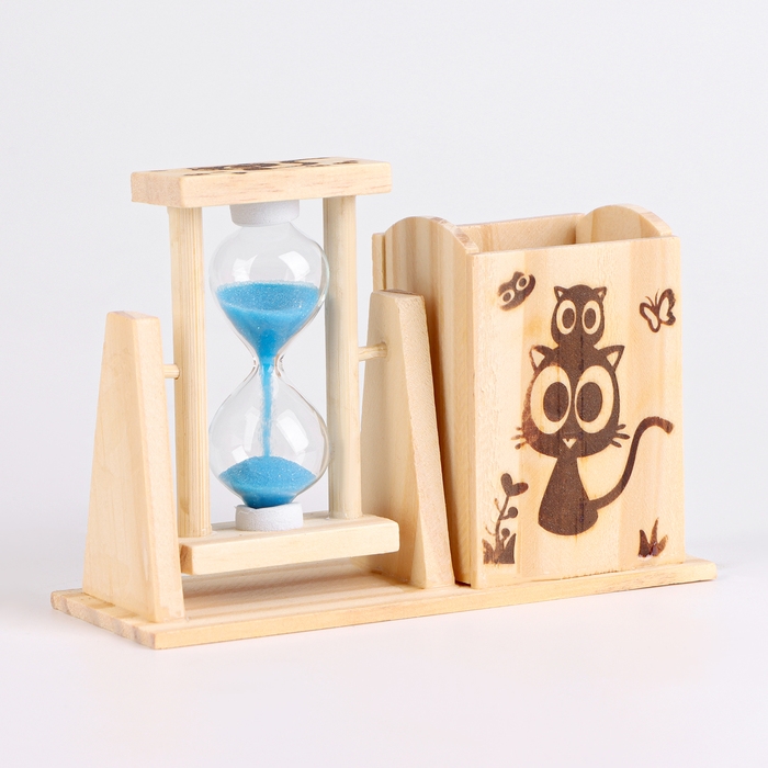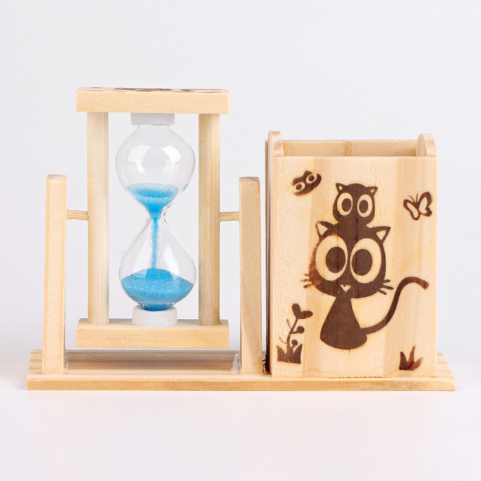 Необычные песочные часы – лучший способ декорировать интерьер комнаты или офиса. Изготовленные из стекла, пластика и декоративного песка, эти часы подойдут под любой интерьер. Отличный вариант на подарок для нее и для него. А также любимой женщине, коллеге, маме и бабушке. Песочные часы оснащены карандашницей, благодаря чему их можно хранить на рабочем столе с целью хранения в нём канцелярии. Глядя на движение разноцветных песчинок вы постепенно будете чувствовать как проходит ваша тревога и стресс. Стилизованные песочные часы состоят из двух сосудов, соединённых узкой горловиной, один из которых частично заполнен песком.