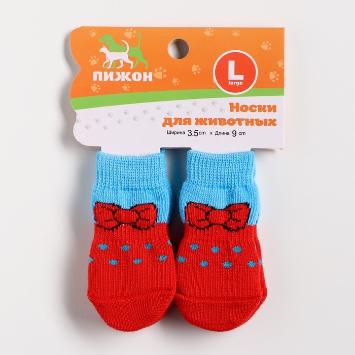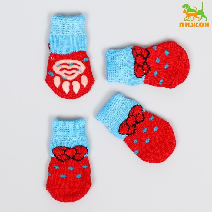 Носки нескользящие "Бантик", размер L (3,5/5 * 9 см), набор 4 шт, красно-голубые