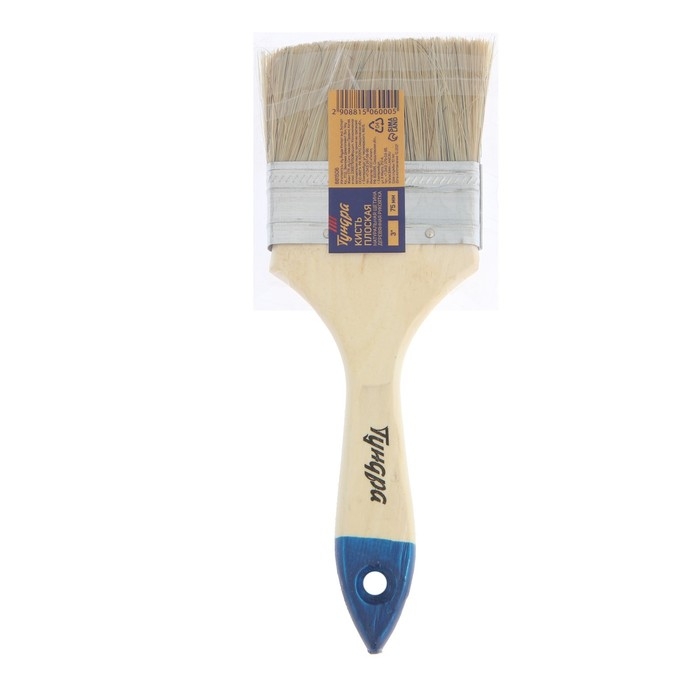 Кисть плоская ТУНДРА, натуральная щетина, деревянная рукоятка, 3", 75 мм