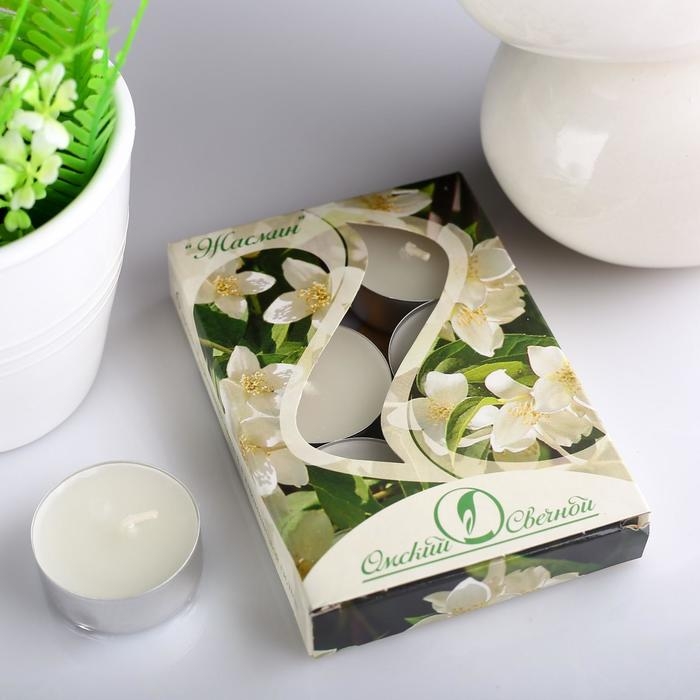 Набор чайных свечей ароматических "Жасмин", 3,8х1,6 см, 3,5 ч, 12 г, 6 штук