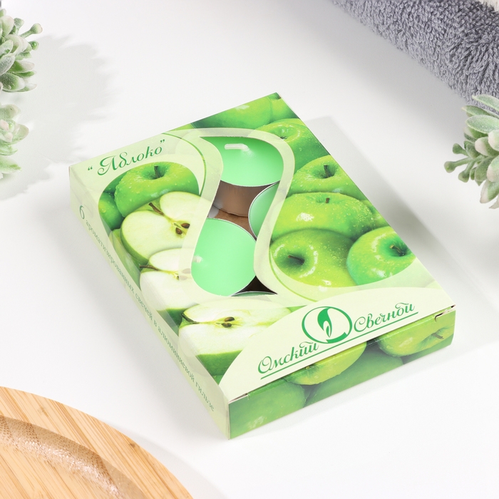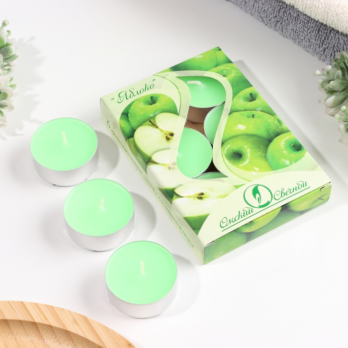 Набор чайных свечей ароматических "Яблоко", 3,8х1,6 см, 3,5 ч, 12 г, 6 штук