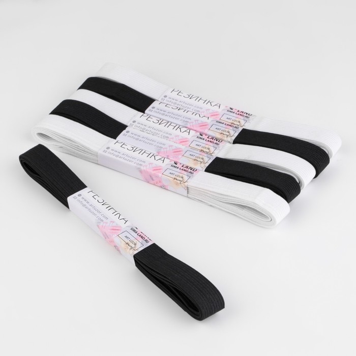 Резинки бельевые, 15 мм, 2 ± 0,5 м, 6 шт, цвет белый/чёрный