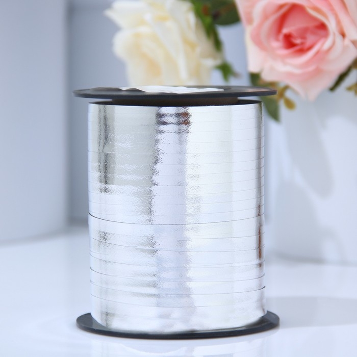 Лента для декора и подарков 0,5 см х 250 м, серебряная