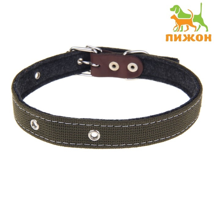 Ошейник брезентовый на фетре, 62 х 2,5 см, ОШ 30-55 см, тёмно-зелёный