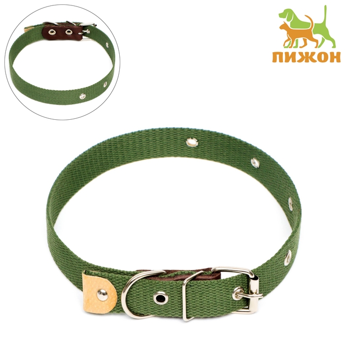 Ошейник брезентовый однослойный, 60,5 х 2,5 см, ОШ 30-55 см, тёмно-зелёный