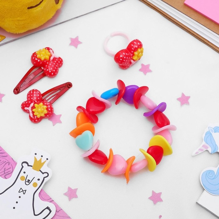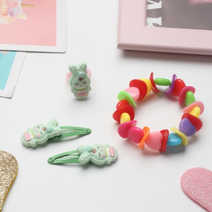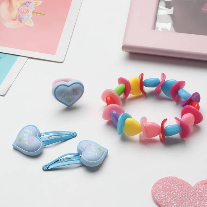Комплект детский «Выбражулька» 4 предмета: заколка, 3 браслета, сердце, цветной