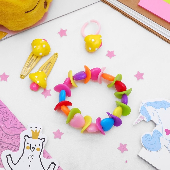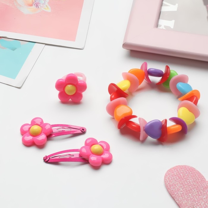 Комплект детский «Выбражулька» 4 предмета: 2 заколки, браслет, кольцо «Горошек», форма МИКС, цвет МИКС