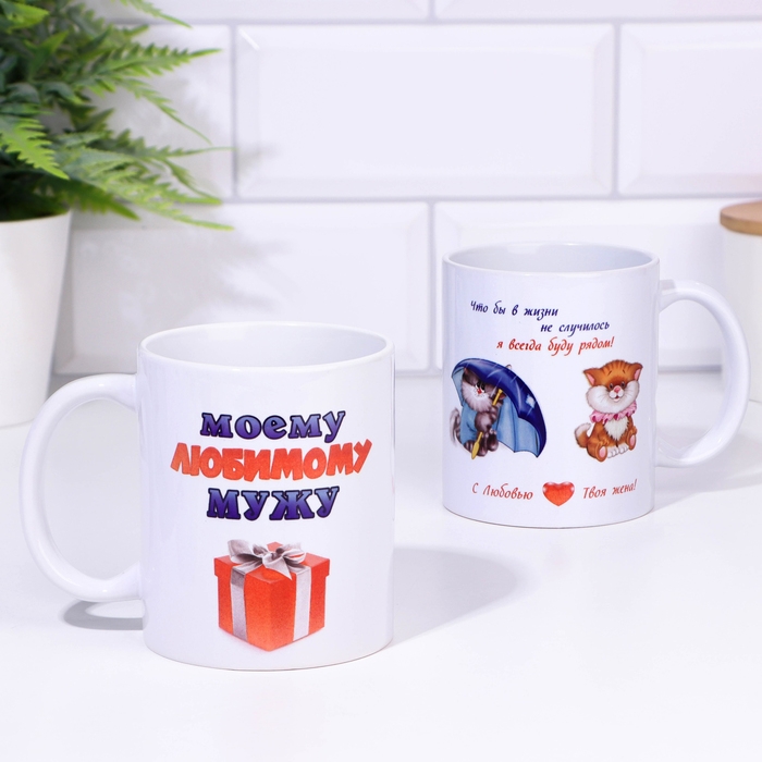 Кружка сублимация "Моему любимому мужу" котята, c нанесением