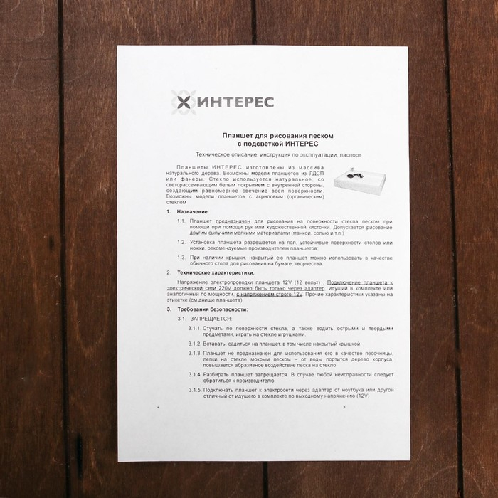 Планшет для рисования песком, 42 × 60 см, фанера, оргстекло: 2 мм, с белой подсветкой, без песка