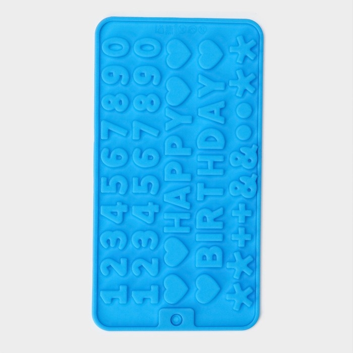 Форма для кондитерских украшений Доляна «С Днём рождения», силикон, 21,5×11,5 см, 49 ячеек (1,8×1,3 см), цвет синий