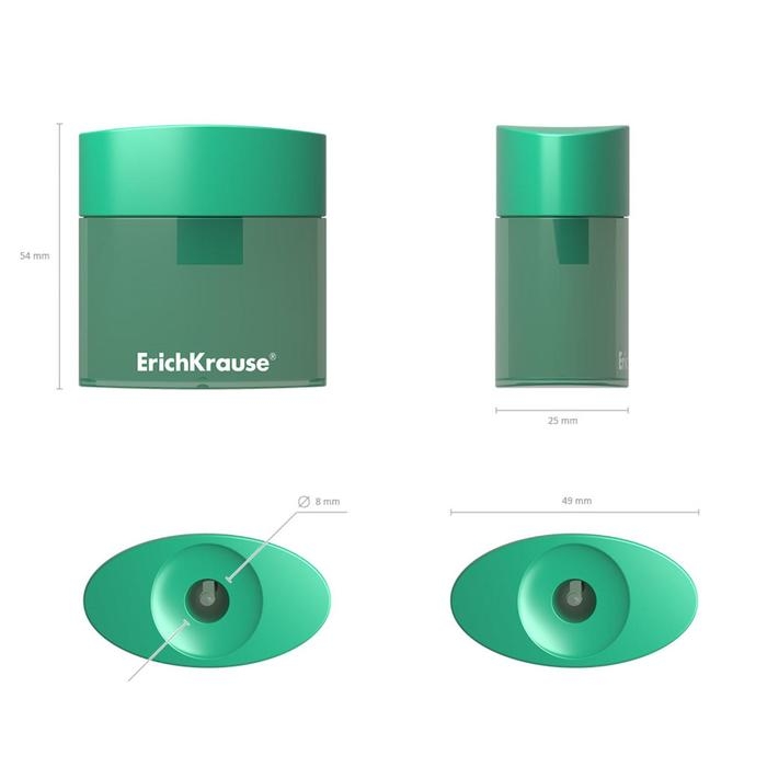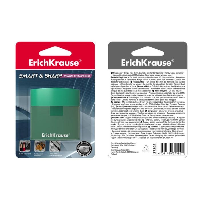 Точилка 1 отверстие Erich Krause SMART & SHARP, с контейнером, отверстие диаметром 8 мм, микс