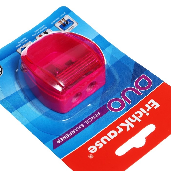 Точилка 2 отверстия ErichKrause Duo, с контейнером, отверстия диаметром 8 мм, в блистере, микс