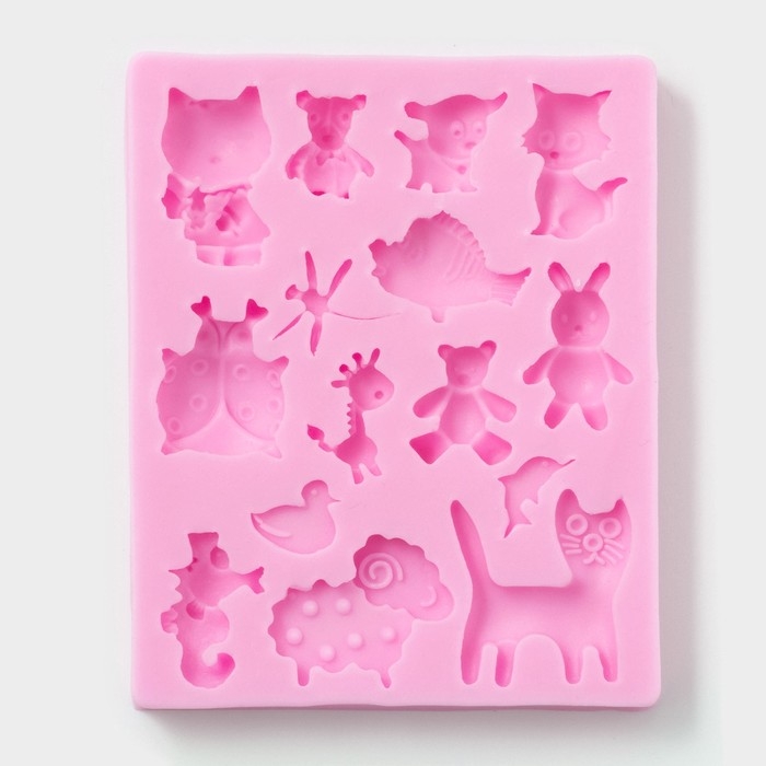 Молд Доляна «Зверята», 9,5×7,5×1 см, цвет розовый
