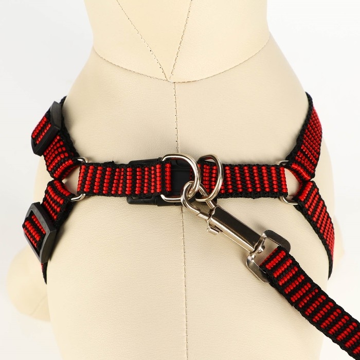 Комплект амуниции рельефный, 1,5 см, шлейка 36-49 см, поводок 120 см, красно-чёрный