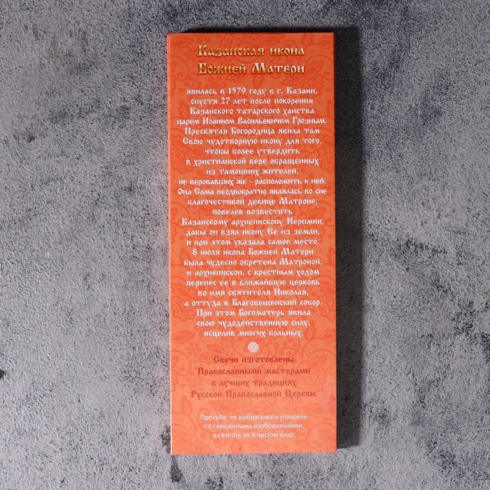 Набор свечей церковных "Казанская Божья Матерь" для домашней молитвы, парафин, 12 шт