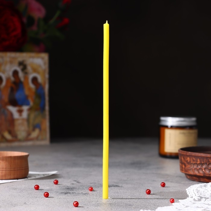 Эту свечу вы сможете использовать как в церковном, так и в домашнем обиходе для религиозных обрядов. Она не содержит ароматических примесей и красителей.