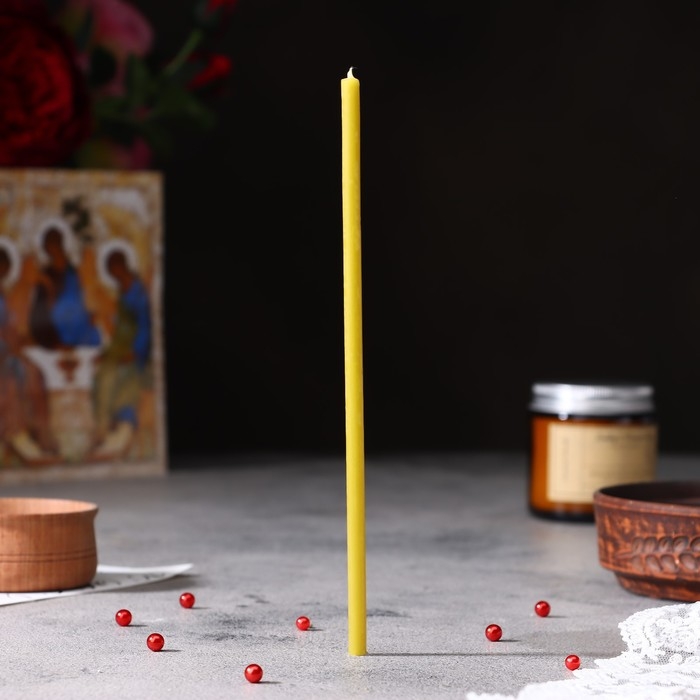 Эту свечу вы сможете использовать как в церковном, так и в домашнем обиходе для религиозных обрядов. Она не содержит ароматических примесей и красителей.